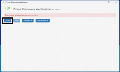 Click Start to begin discovery Virima Discovery Application.