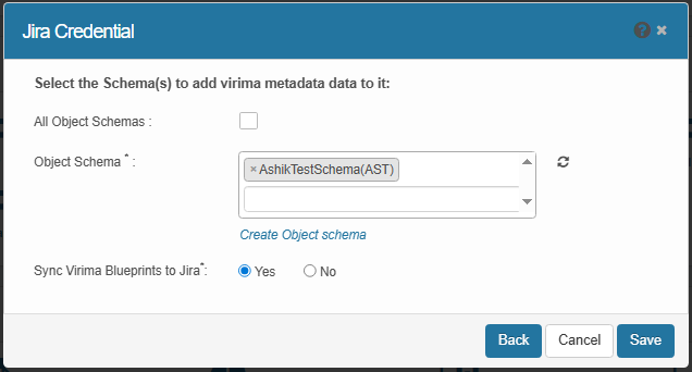 Select Yes to sync Virima Blueprints into Jira schemas. No to skip.
