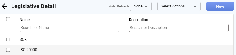 Click New. The Legislative Detail window displays. |
