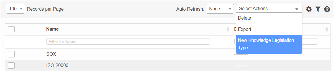 From the Select Actions drop-down list, choose New Knowledge Legislation Type. The Legislative Detail window displays. |
