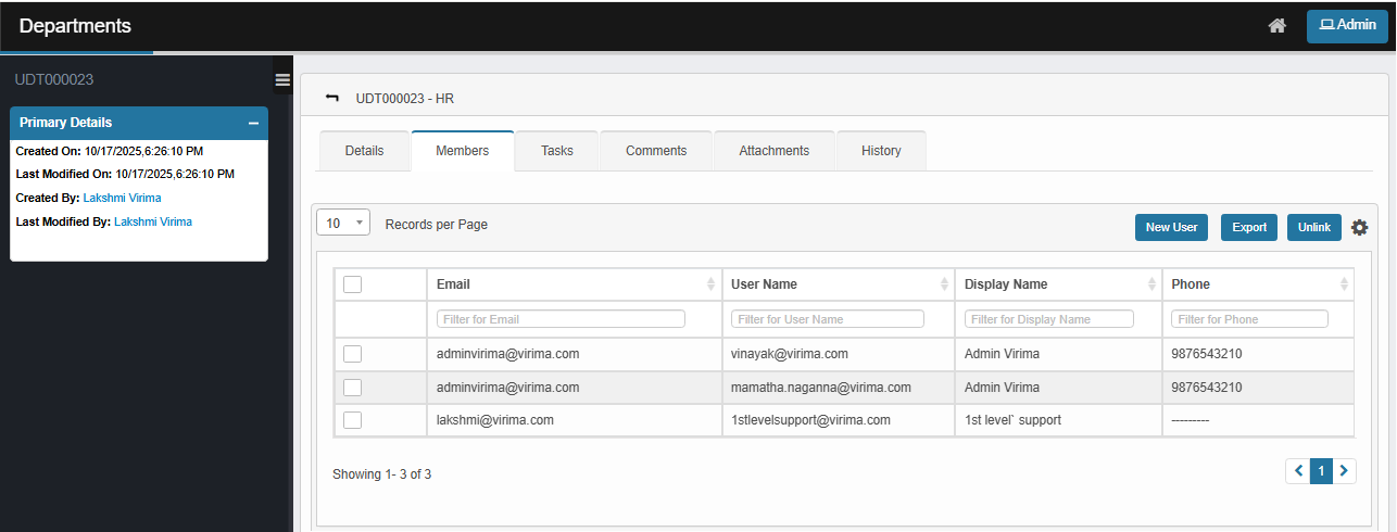 | 1. | In the main window, click Admin > Organization Details > Departments. The Departments window displays. |