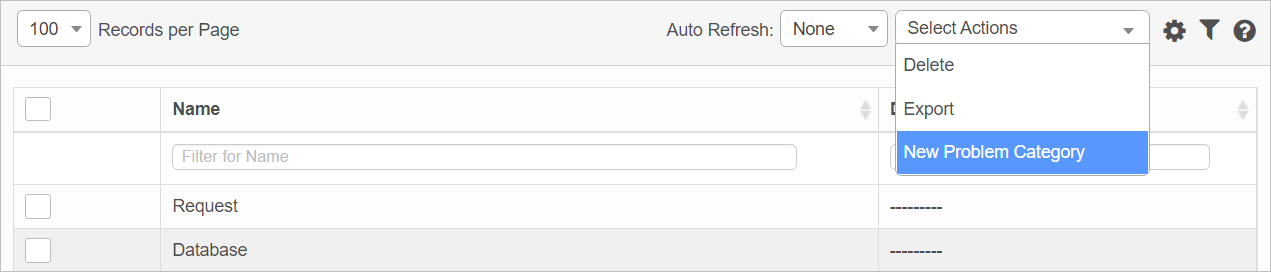 From the Select Actions drop-down list, choose New Problem Category. The New Problem Category window displays. |