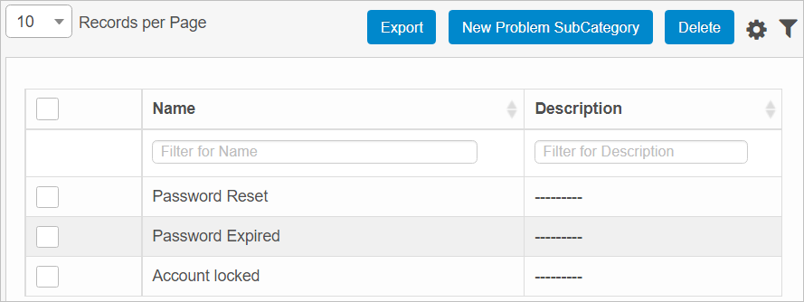 Click New Problem SubCategory. |