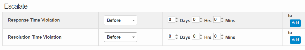 Notification email can be sent either Before/After after the Response/Resolution Time violation.