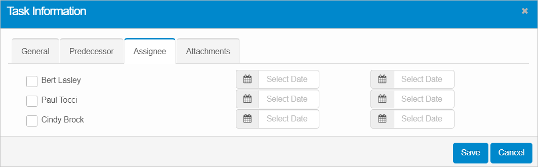 | 2. | Click the plus + sign on the right-hand side of the row. The Task Information window displays. |