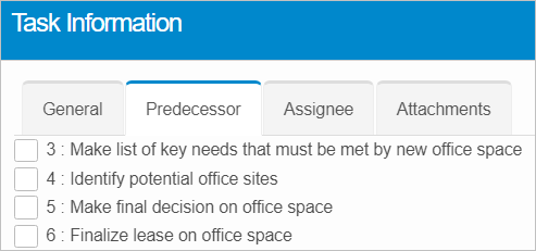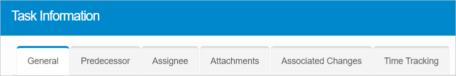 | The tabs change based upon the Task Type. |
