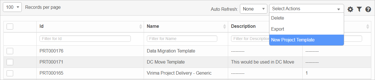 | 1. | From the Select Actions drop-down list, choose New Project Template. The New Project Template window displays. |