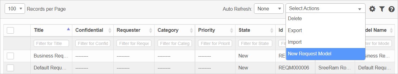 | 1. | From the Select Actions drop-down list, choose New Request Model. The Add Request Model window displays. |