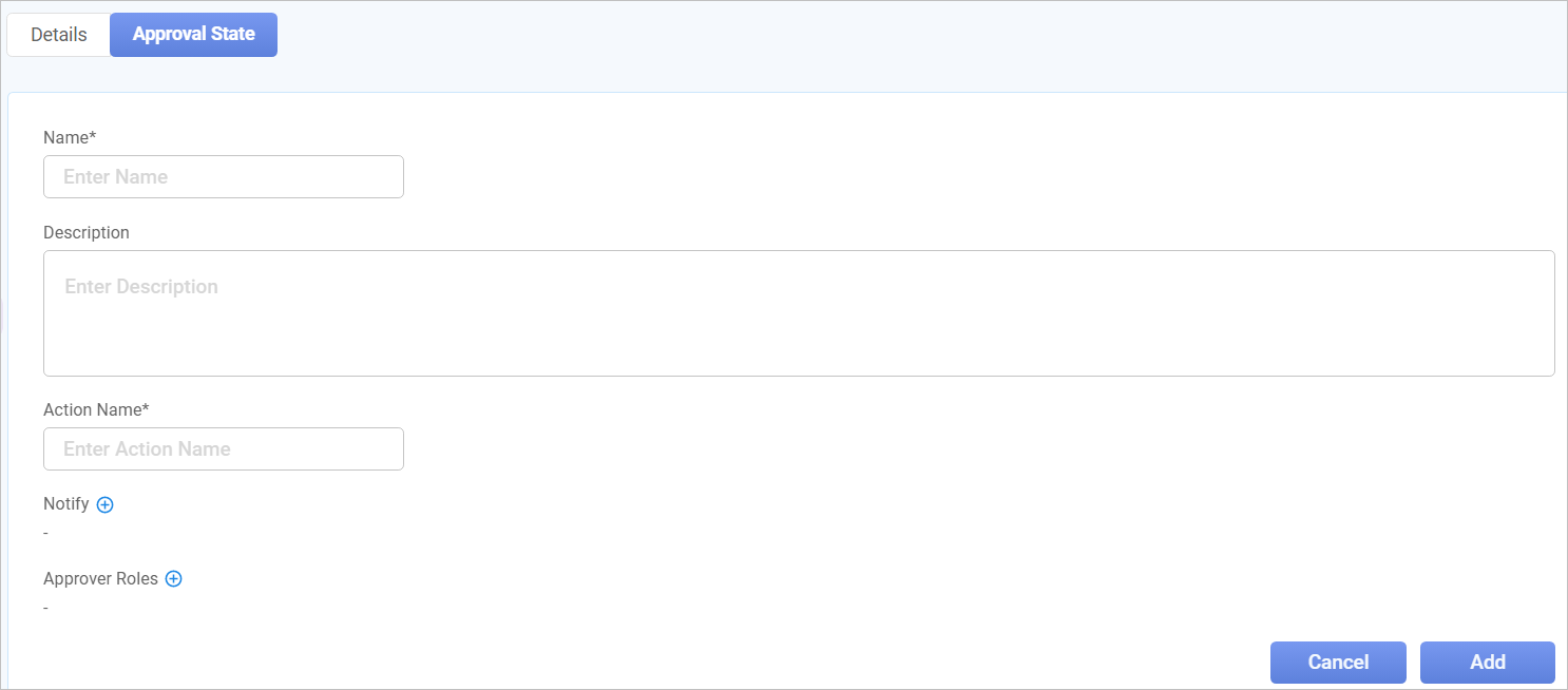Search for and select the applicable role(s) with permissions to approve the defined state. Then click Add. |