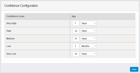 | 1. | In the main window, click Admin > SACM > Confidence Configuration. The Confidence Configuration window displays. |