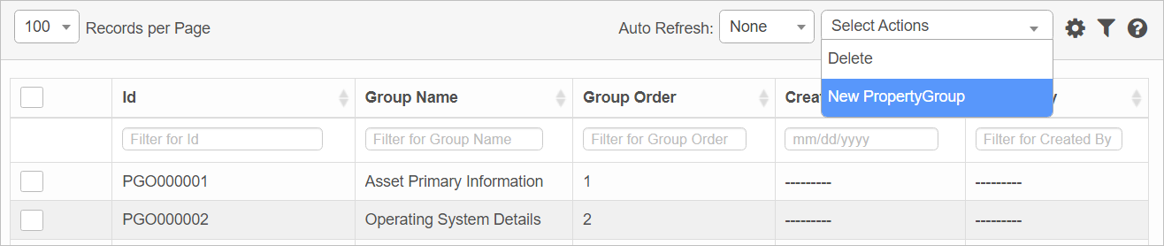 From the Select Actions drop-down list, choose New Property Group. |