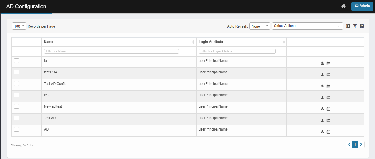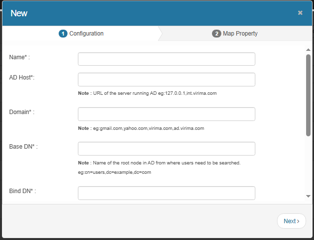 From the Select Actions drop-down list, choose AD New Configuration. |