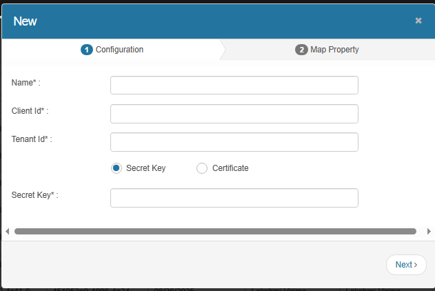 From the Select Actions drop-down list, choose New Azure AD Configuration. |