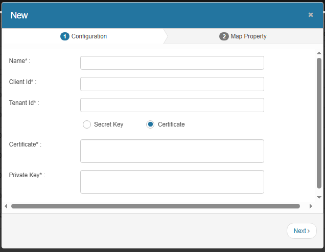 Certificate – Provide the authentication method (certificate with private key).