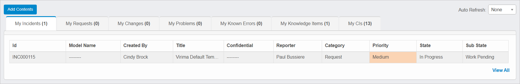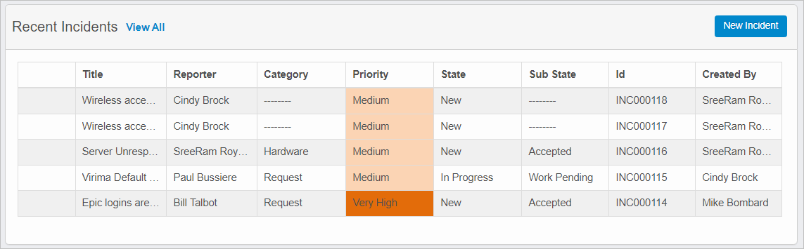 In the example below, the Incident Management Dashboard lists recent incidents.