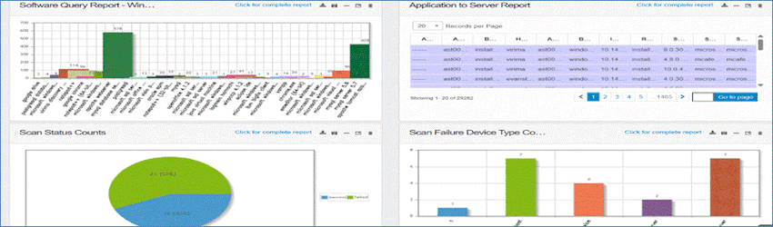 The Discovery Scan Dashboard displays a variety of configurable reports to help monitor system activity. Users can add, remove, or rearrange these reports for a personalized monitoring experience.