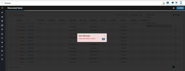 If Actions are selected without selecting atleast one record, the following error will be displayed