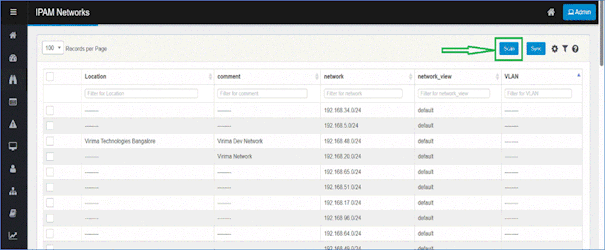 The Scan function allows monitoring of devices and network configurations within the environment.