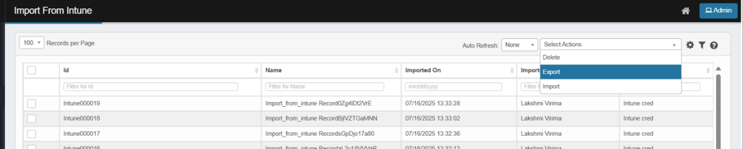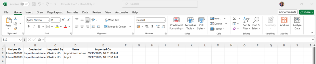 Exports data for the selected imported Intune record as an Excel spreadsheet and sends an email notification when the spreadsheet is ready for download.