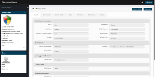 Asset ID – Virima’s unique identifier for the discovered CI (e.g., DSC69303). Use this to search or reference the record.
