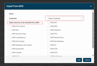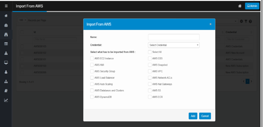 From the Select Actions drop-down list, choose Import. The Import From AWS dialog box displays.