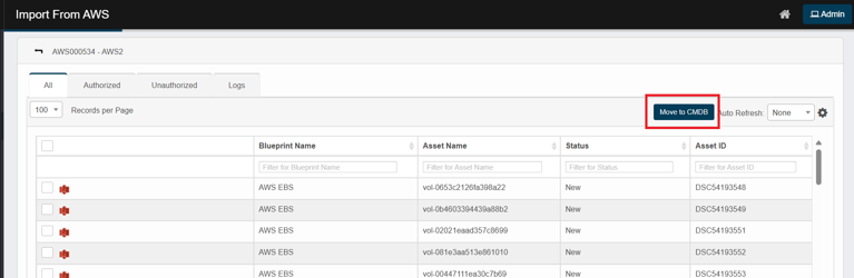 After importing AWS data, you may promote it to the CMDB.
