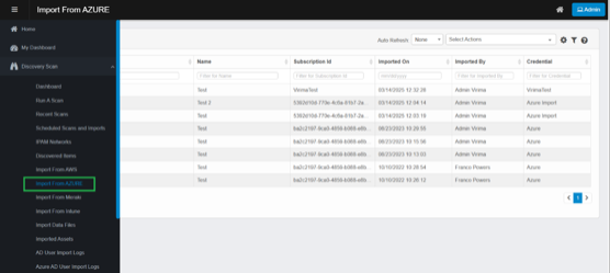 In the navigation pane, select Discovery Scan › Import from AZURE.