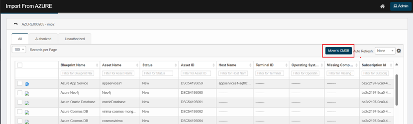 Upon successful move to CMDB, the records will be deleted from “Import from AZURE” and “Discovered Items” View.