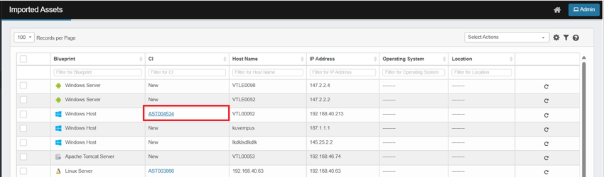 If we click on any other column values regardless of whether CI exists in CMDB or not, the user is redirected to Imported Assets view to view the imported asset data.