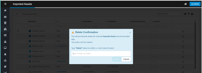 This action permanently removes the selected asset record(s) from the Imported Assets list, ensuring that outdated or incorrect entries do not clutter the system.