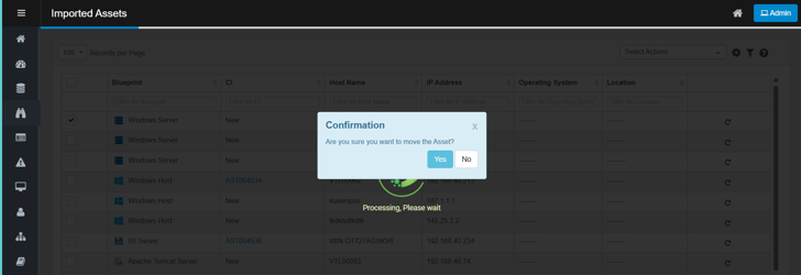The system begins processing and moves the selected records into the CMDB.