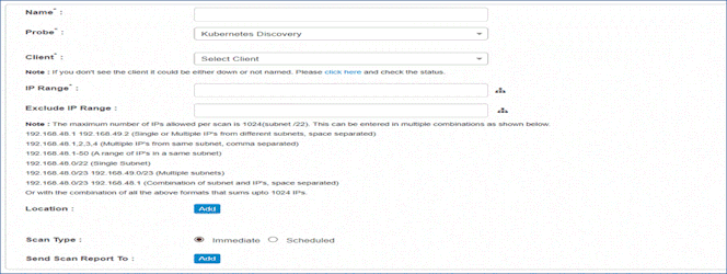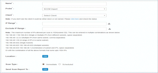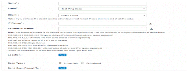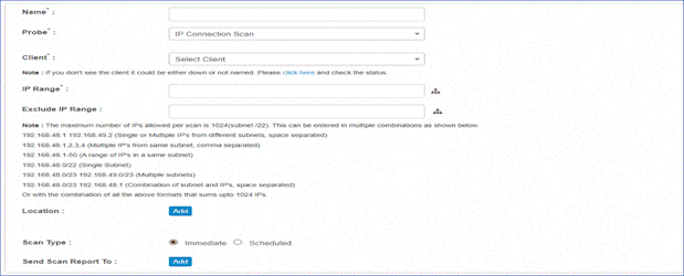 IP Address is selected by default. This selection displays the IP Range and Exclude IP Range input fields.