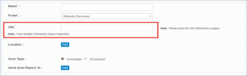 URL*: The user must enter the complete web addresses that need to be scanned. This input supports multiple URLs, which should be separated by a space.
