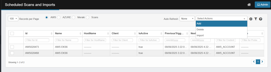 Click AWS at the top, then Select Actions → Add.