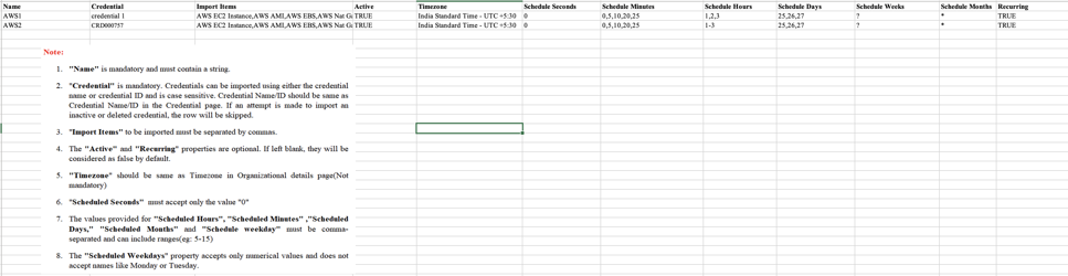 Download template: In the Import AWS Schedule popup, click the link to download the sample file.