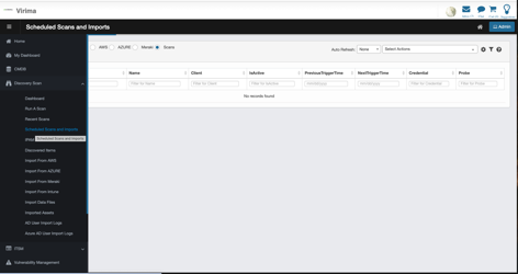 Access the page via Discovery → Scheduled Scans and Imports from the left navigation menu.