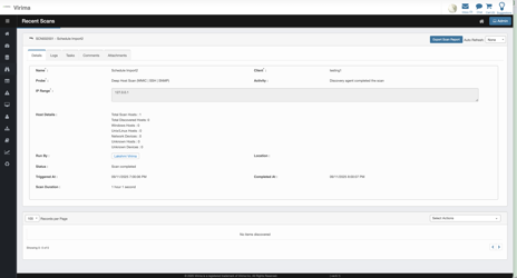 Upon Click user is redirected to Recent Scans Page with details of the scan.