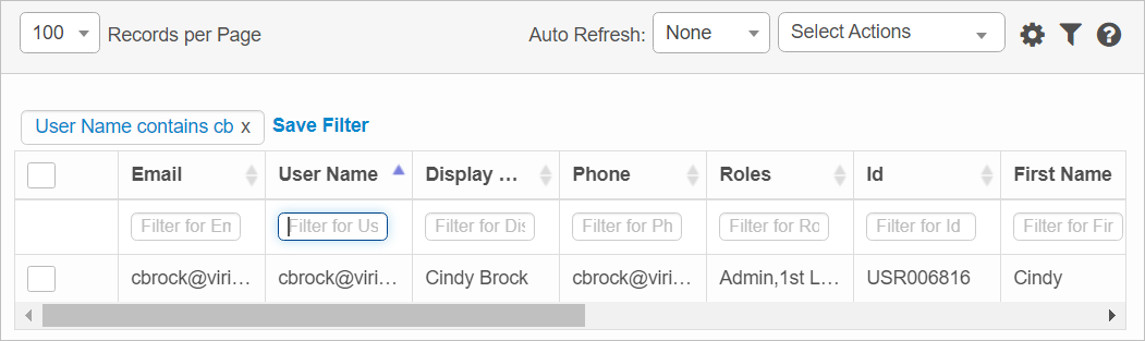 Multiple columns can be filtered at the same time. Enter the search criteria in each Filter field and press Enter. |