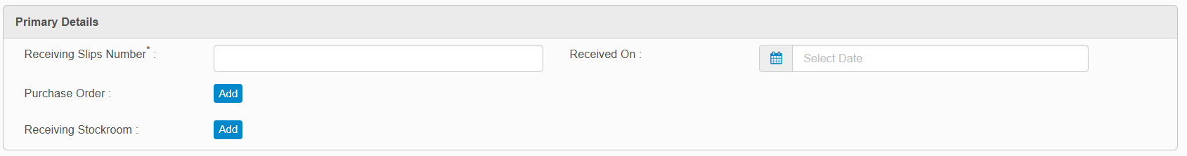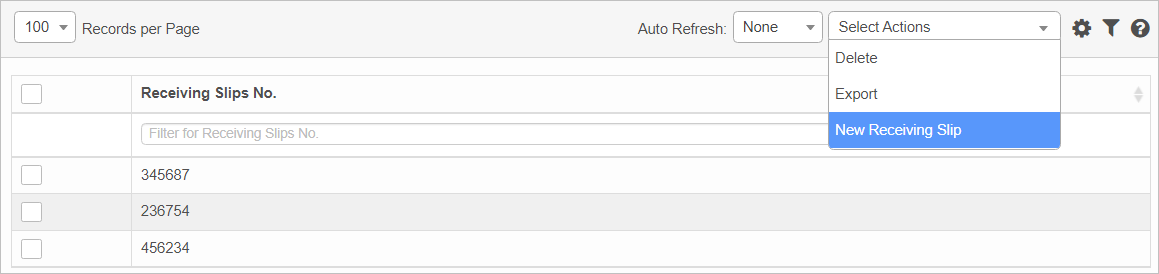 | 1. | From the Select Actions drop-down list, choose New Receiving Slip. The New Receiving Slip window displays. |