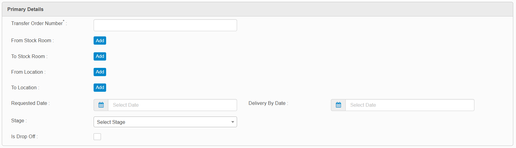 Stage. Click the drop-down list and select the Stage of the transfer order, such as Requested, Shipment Preparation, etc.