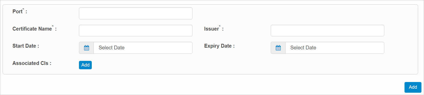 Enter a Certificate Name, Port, and Issuer. |