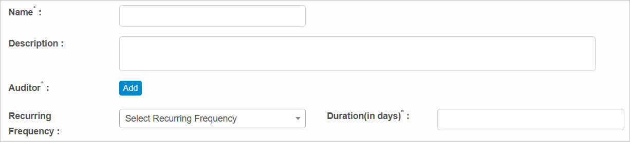 Enter the Duration (in days) to indicate the length of time for the audit. |