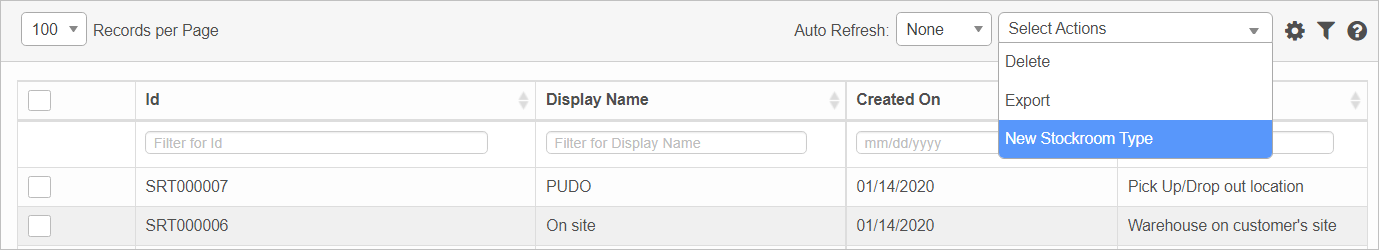 From the Select Actions drop-down list, choose New Stockroom Type. |
