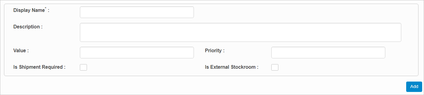 Enter the Priority of the stockroom. This helps determine when the stockroom should be cleared of inventory. |