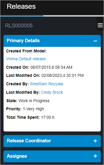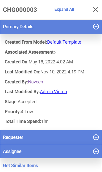 To view corresponding information for selected items, click the text shown in blue. This is a hyperlink to the relevant information. For example, if Last Modified By is clicked, the Access Management window displays the details for that user.