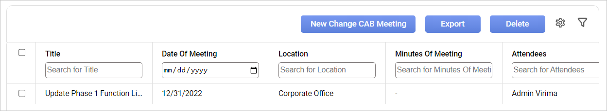 | 2. | Click New Change CAB Meeting. |
