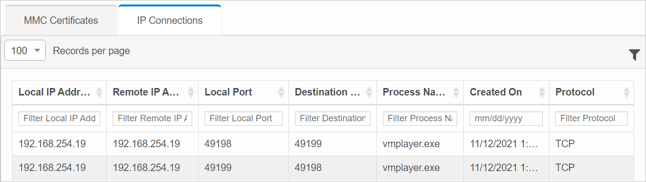 | 4. | Click IP Connections. A list of all IP Connections displays. This information is view only. It can be filtered. |