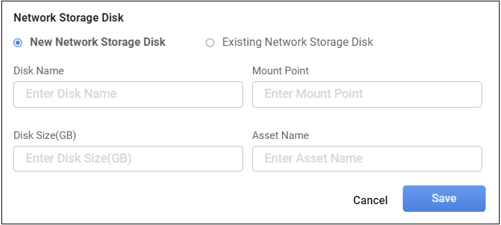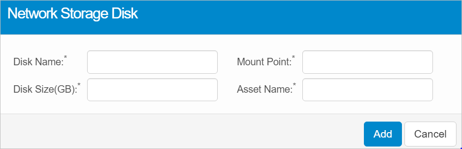 | 1. | Click Add. The Network Storage Disk dialog box displays. |