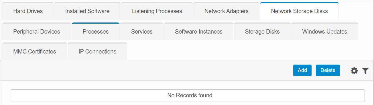 While viewing the list of existing records, select a record(s) to delete, and click the Delete button.