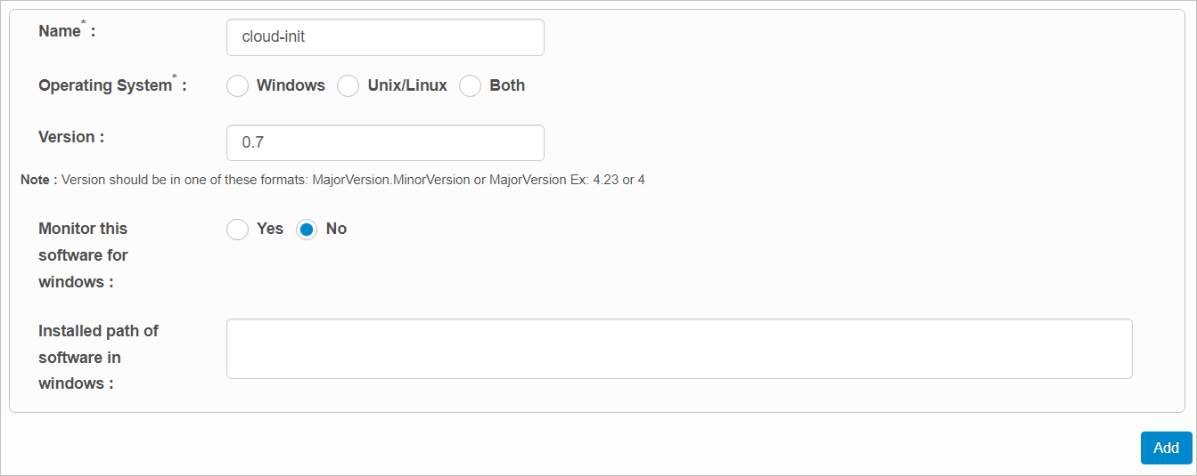 | Operating System | Select Windows, Unix/Linux or Both. Based on this selection, the fields will vary. |